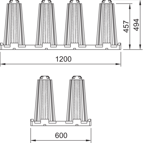 Gatavās kasetes augstums ir 914 mm un tā sastāv no divām 457 mm augstām pusēm. Maksimāli var būt 2 kārtas.Virsmas pildījums 800-2000mm.